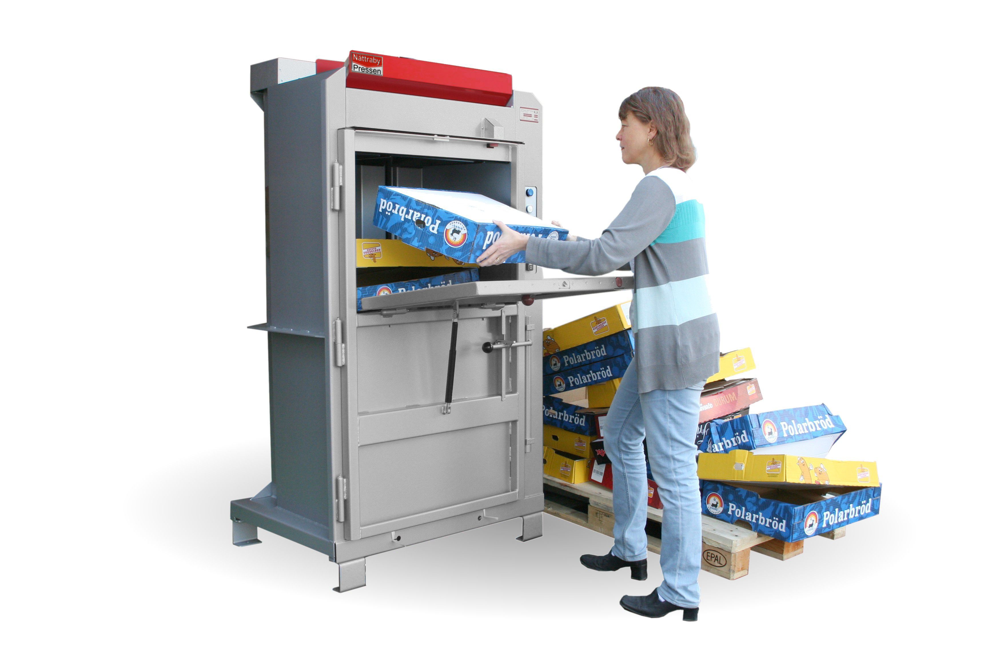 Für Komprimierung von Wellpappe, Kartons, Plastikfolien etc. geeignet.